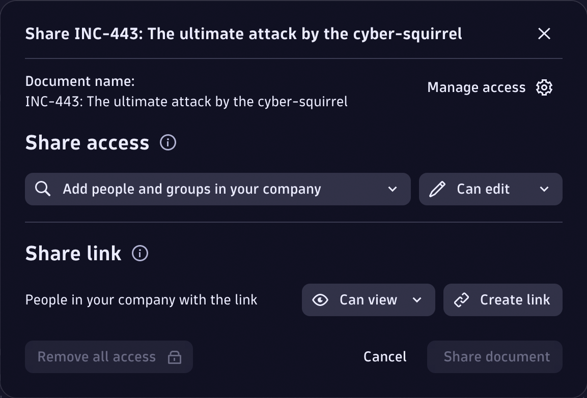 You can also combine the modes: You can create a read-only link to distribute the case in the organization for everyone to view and give edit privileges to your teammates for collaborative investigations at the same time!