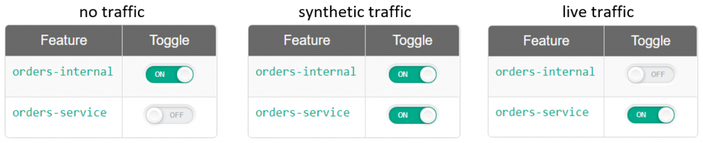 What we have now accomplished is a mechanism that provides flexibility in calling the new microservice. By default, we would deploy the backend with the orders-internal flag enabled sending no traffic to OrdersService. This should not change the service behavior. To start testing the new microservice, we would toggle the orders-service feature flag. With both flags enabled, a booking request is persisted by backend-v2 and synthetic traffic is sent to OrdersService. At the microservice’s side, we would process a ticket booking as implemented but rollback the data before completion. As a result, we can get a sense of how the new code path is executed and how it impacts the response time. Finally, and with enough confidence in how the microservice behaves, we can send live traffic to the microservice by disabling the orders-internal feature flag.