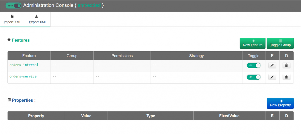 To use FF4J, see the instructions on GitHub in project backend-v2. There, it is explained how to add the dependency and to declare the feature flag in the ff4j.xml configuration file. A deployment of backend-v2, as explained below, automatically starts the FF4J web console to en/disable the feature flags and to control how strong we incorporate the microservice into the monolith.