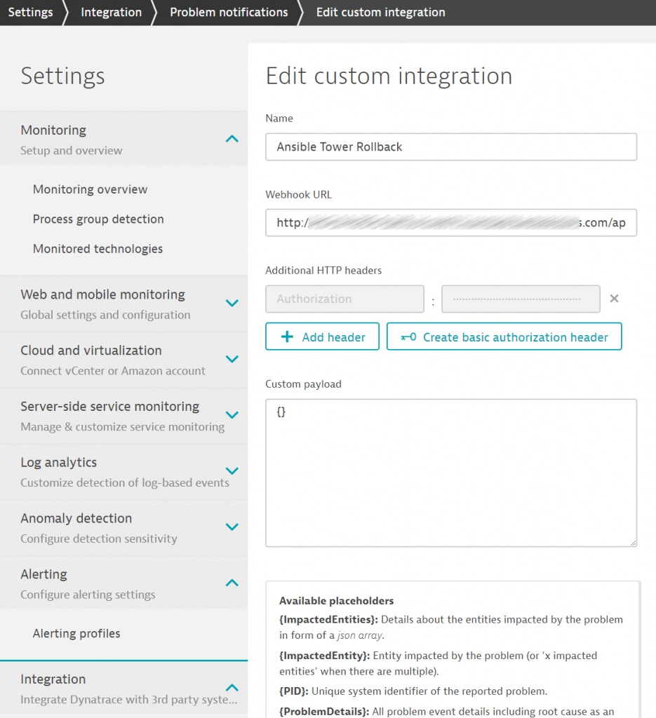 You’ll need the credentials of your Ansible Tower installation to allow access to your API. You won’t need a payload, so delete everything between the brackets in the Custom payload text field.