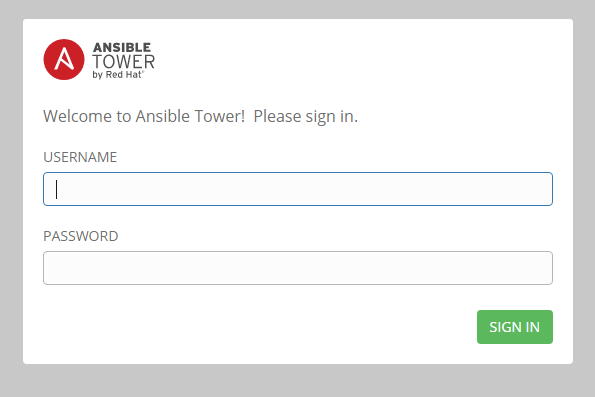 - Once you’ve installed Ansible Tower, sign in, and use your browser to connect to your Ansible Tower installation.