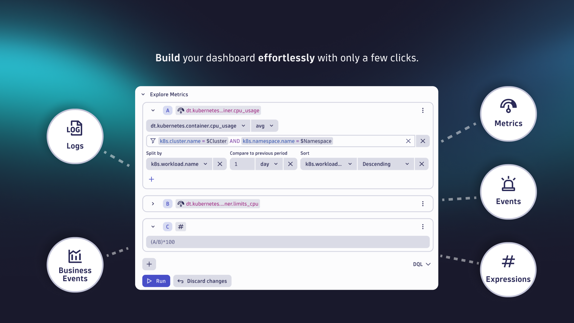 - Effortlessly explore data in Dynatrace and create dashboards from it.