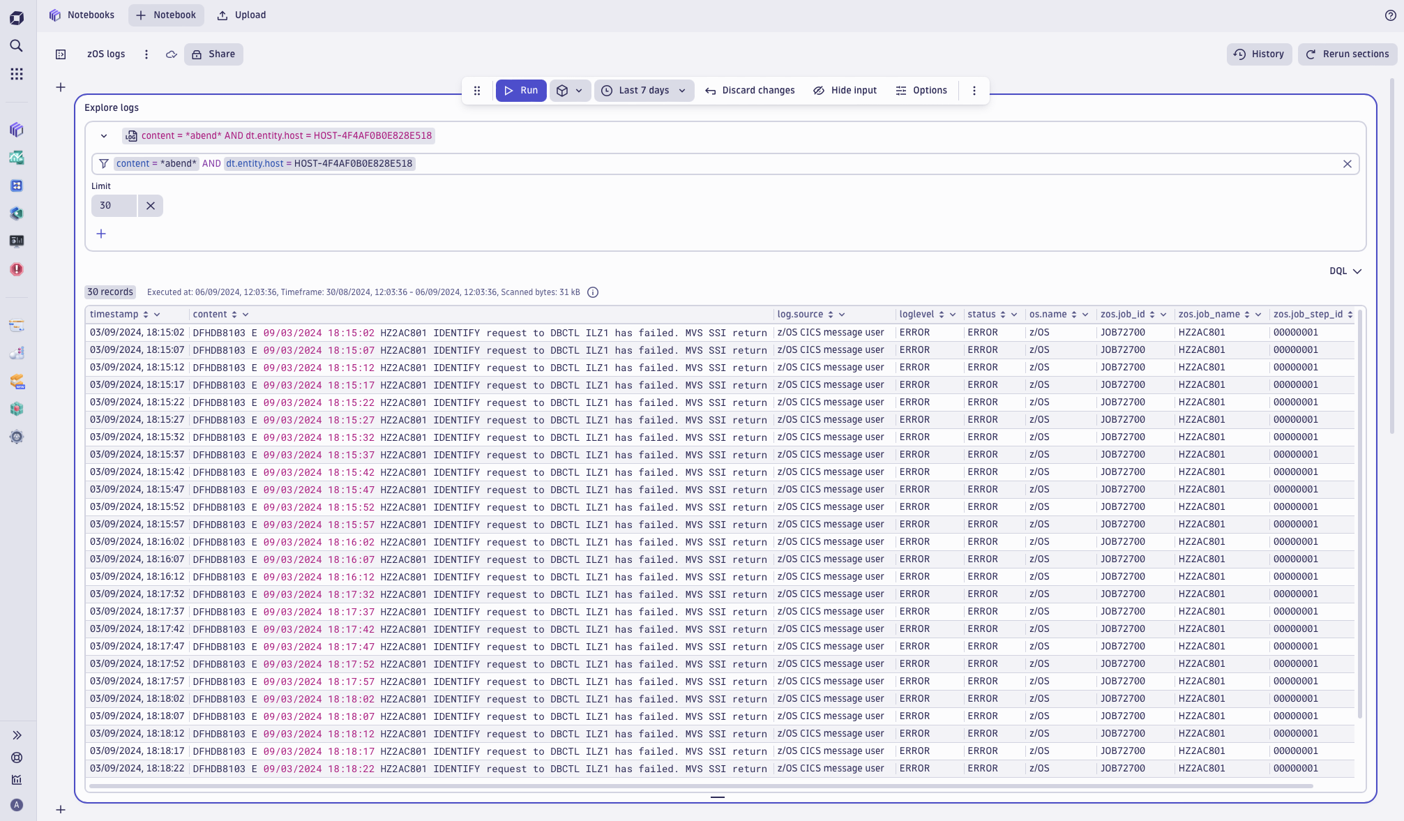 Monitoring logs with Dynatrace facilitates novel ways to analyze telemetry data, significantly expanding the observability use cases for IBM Z mainframes. For example, with DQL queries, operators can quickly access all abends or drill down into specific job statistics.