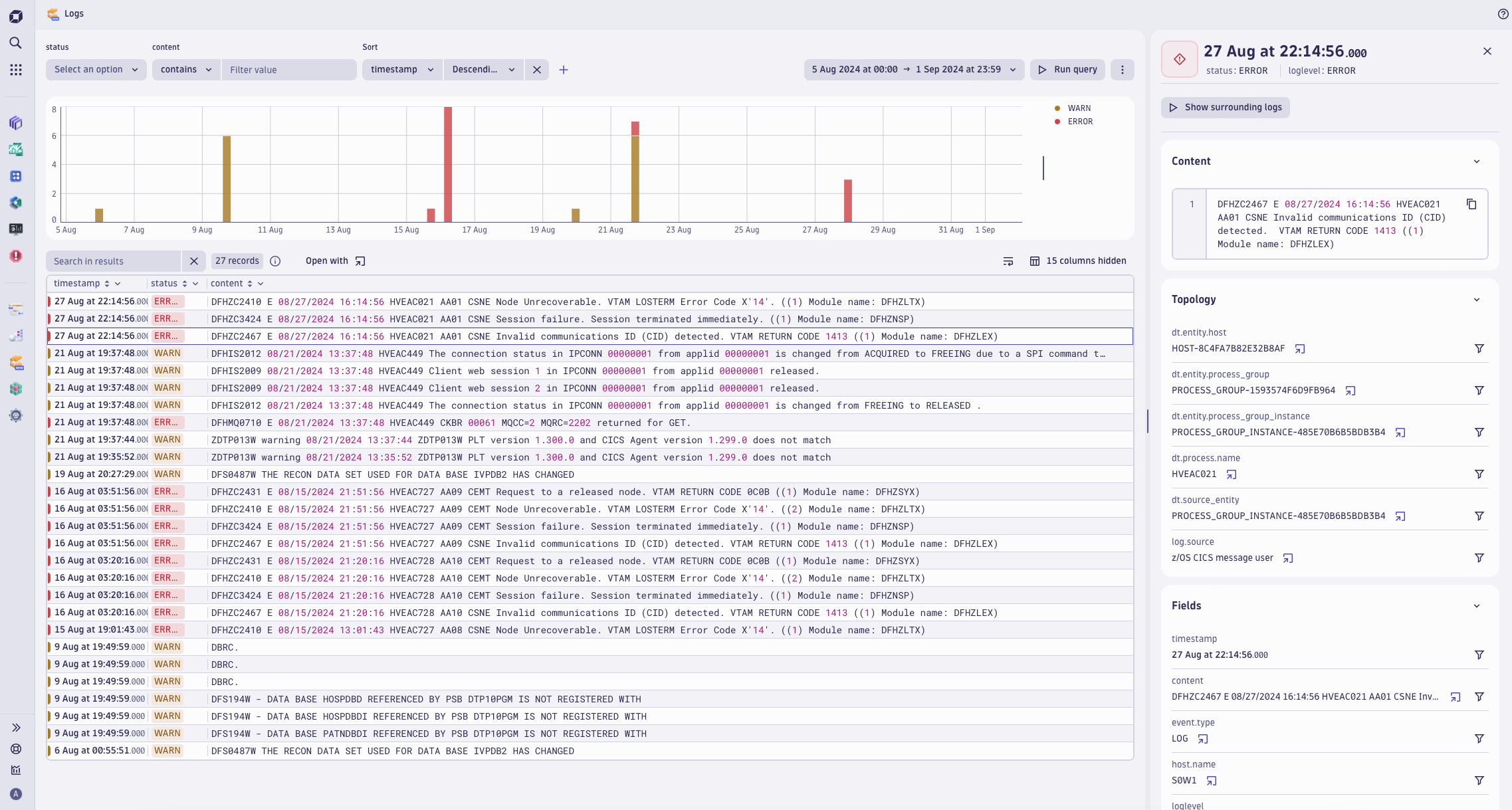 You can now extend root cause analysis for any issue identified by Davis® AI with logs that are automatically linked to z/OS applications, transactions, or other identifiers specific to the environment hosting the resources.
