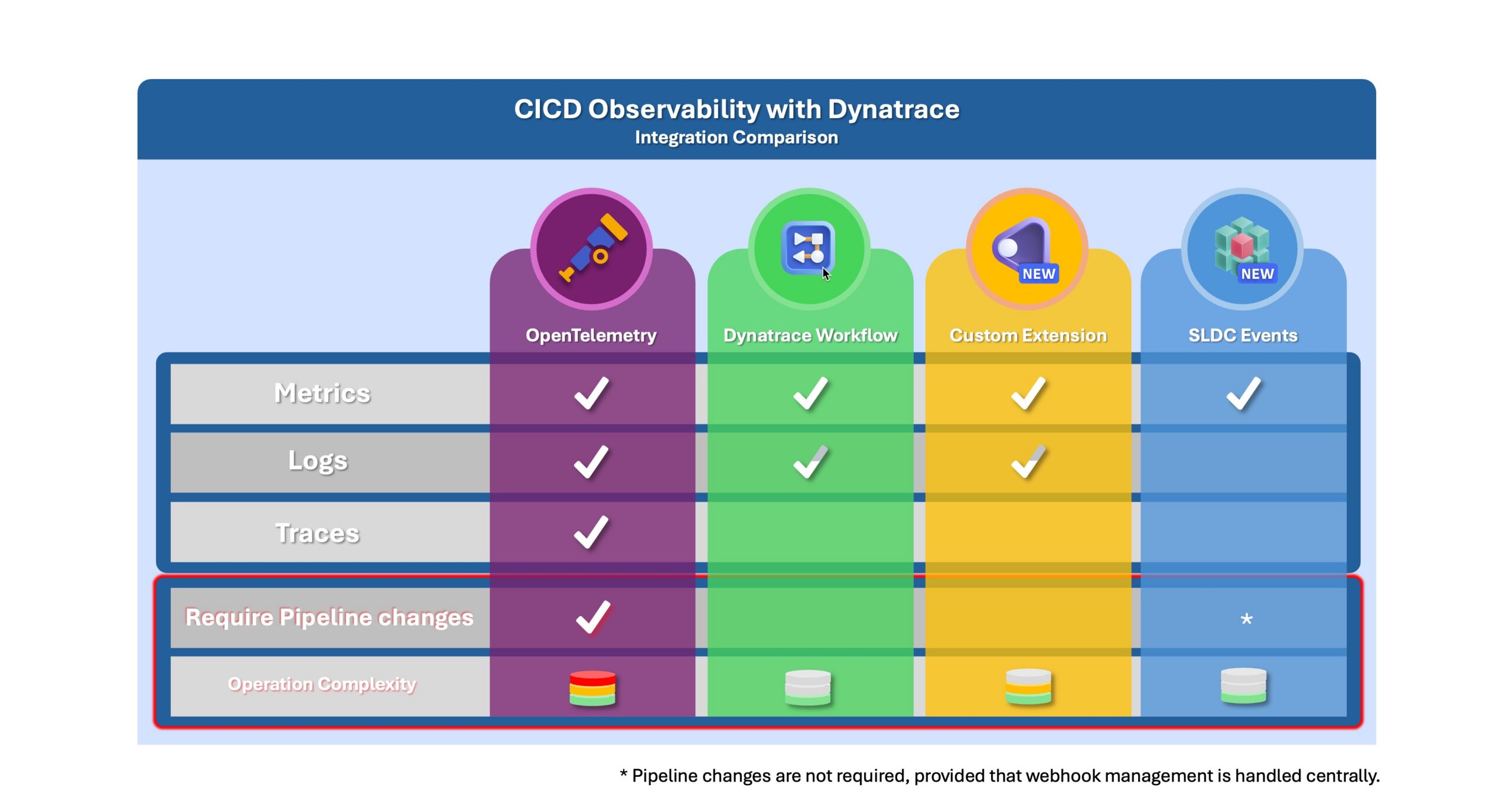 Similar to workflows, extensions can query CI/CD APIs and ingest relevant metrics into Dynatrace. They avoid pipeline modifications but require development effort and ongoing maintenance.