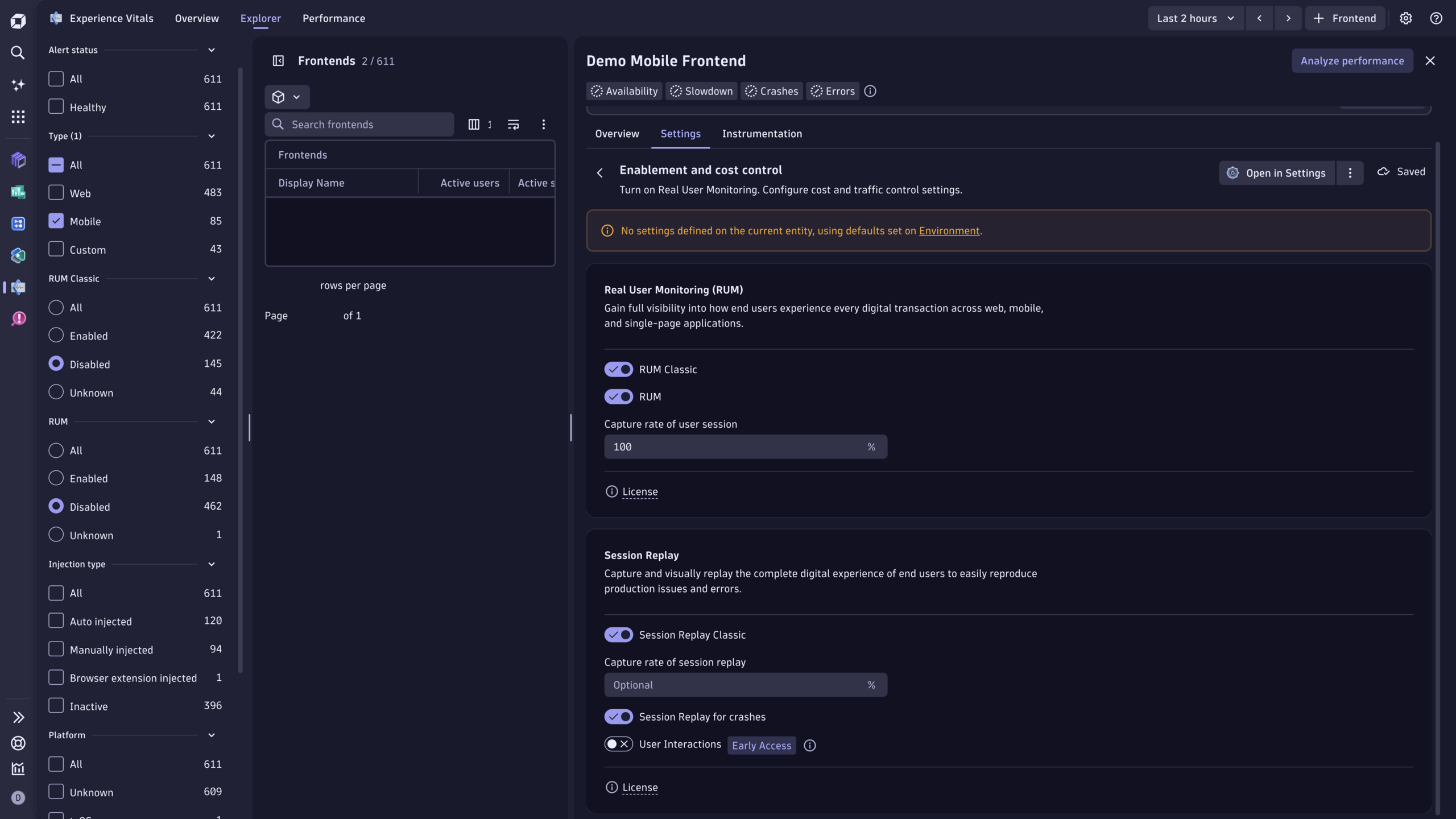 The new RUM experience is now generally available, with all apps and features available by default on DPS SaaS tenants with version 330 or higher. You can allow data ingestion to the Dynatrace 3rd-generation platform for individual frontends or whole environments. (Classic data capture isn’t impacted.)