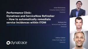 In this Performance Clinic we focus on the seamless integration of Dynatrace real-time monitoring data into ServiceNow IT operations management (ITOM) workflows. Wolfgang Beer, Technical Product Manager, and Jairam Ramaswamy, Enterprise Solution Architect, will guide through the integration setup and show you how to use an alert management rule to automatically trigger a remediation workflow to fix a failing service.