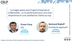 Événement du CRiP hébergé par ITiForums | Grâce à la maitrise de son SI - évolutif, hétérogène et complexe - la DSI d’ENGIE Entreprises & Collectivités accompagne la digitalisation de son business, qu’est la vente des services énergétiques d’Engie aux professionnels. Elle fournit au quotidien des services performants à ses équipes IT. Cette qualité, obtenue grâce à une vision end-to-end du SI et à une prise en compte dès les phases de développement, est perçue par ses clients, et renforce la confiance qu’ils accordent à l’entreprise.