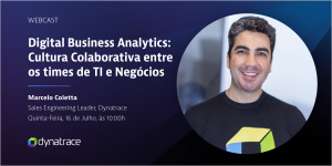 Marcelo Coletta, líder dos SEs da Dynatrace, apresentará neste webinar, como incentivar uma cultura colaborativa entre os times de TI e Negócio utilizando a Plataforma Dynatrace, para obter respostas e facilitar a vida das equipes dentro de sua empresa.