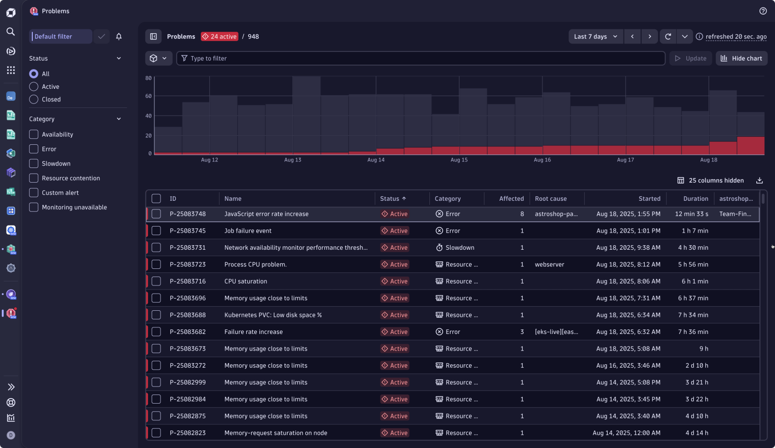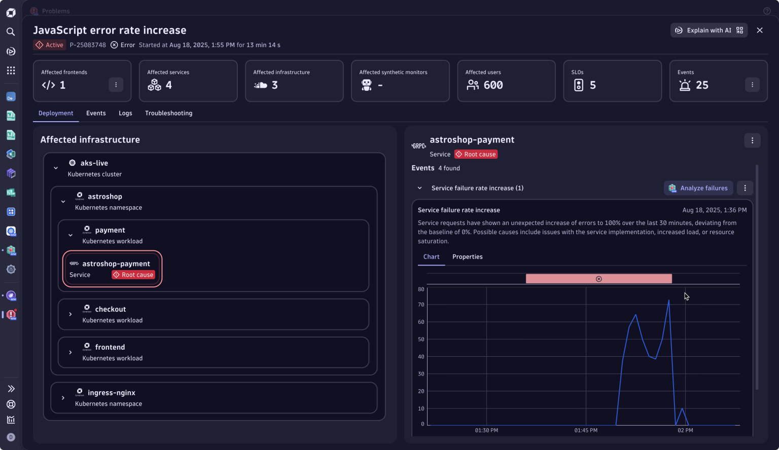 Davis®, Dynatrace’s AI engine, continuously looks for anomalies and provides precise root cause, enabling the resolution of issues in minutes—before they become expensive problems.