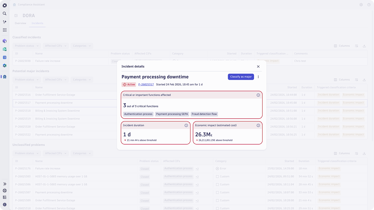 - Automatically detect and classify incidents based on regulatory thresholds and impact criteria.