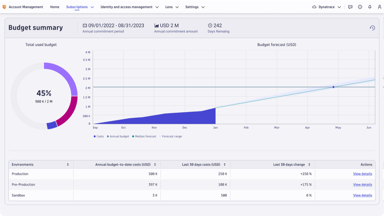 The Dynatrace Platform Subscription (DPS) can make your life simpler, offering a flexible and scalable licensing approach. Set an annual budget commitment and consume any Dynatrace capability based on actual usage. With Hybrid DPS we are introducing a single DPS budget that can be consumed by several Dynatrace accounts, whether SaaS or Managed, making running a Hybrid deployment much easier.