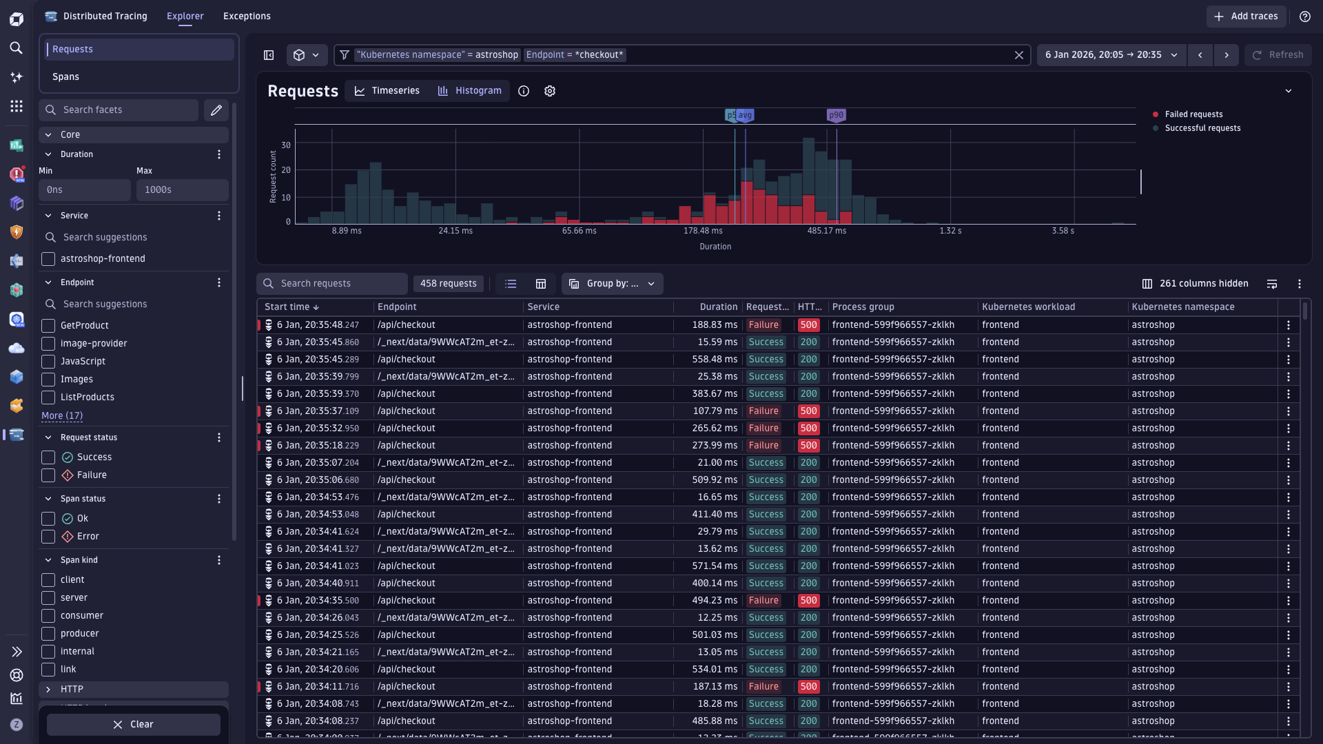 - Effortlessly group and filter traces without code or deployment changes, with Kubernetes attributes automatically in context